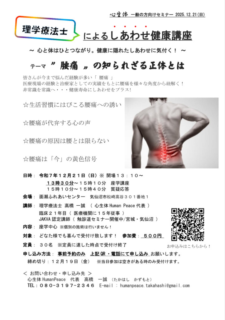セミナー終了後には、腰痛に対するイメージがガラッと変わると思います。